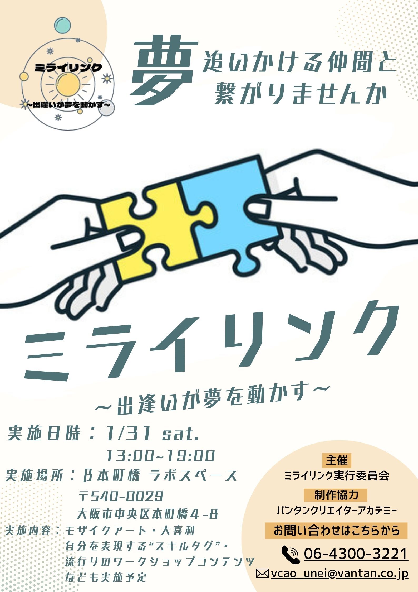 夢を表現しよう「モザイクアート」、大喜利、自分を表現する「スキルタグ」など、人と繋がりながら楽しめるコンテンツと一緒に楽しめるコンテンツと一緒に楽しめるワークショップもたくさん用意しています!