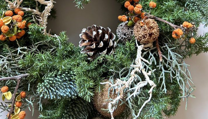 いつもの元気な生花だけでなく、クリスマス感たっぷりのリースやスワッグも!(aru flower) -