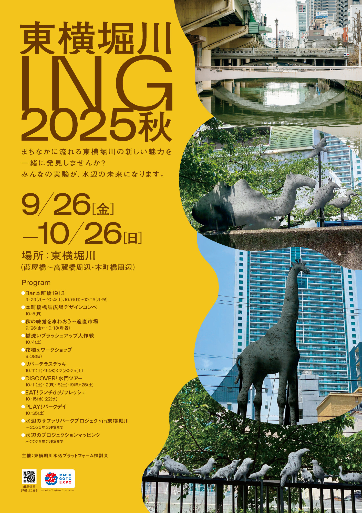 東横堀川ING2025秋では、葭屋橋~高麗橋周辺・本町橋周辺を会場に、様々なプログラムを行う予定です。